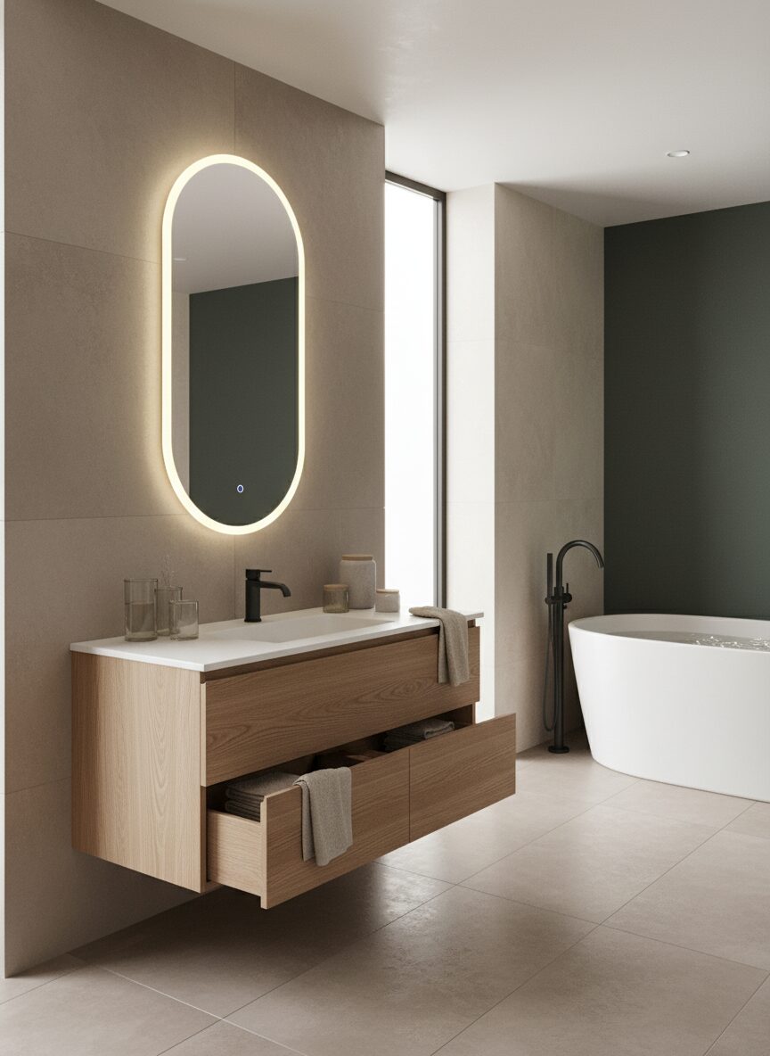 This mirror with LED lighting is not only a practical object, but also a decorative element. Its minimalist design and soft illumination create an atmosphere of calm and meditation. Whether you place it in your bathroom or bedroom, it will add an elegant accent to your interior.