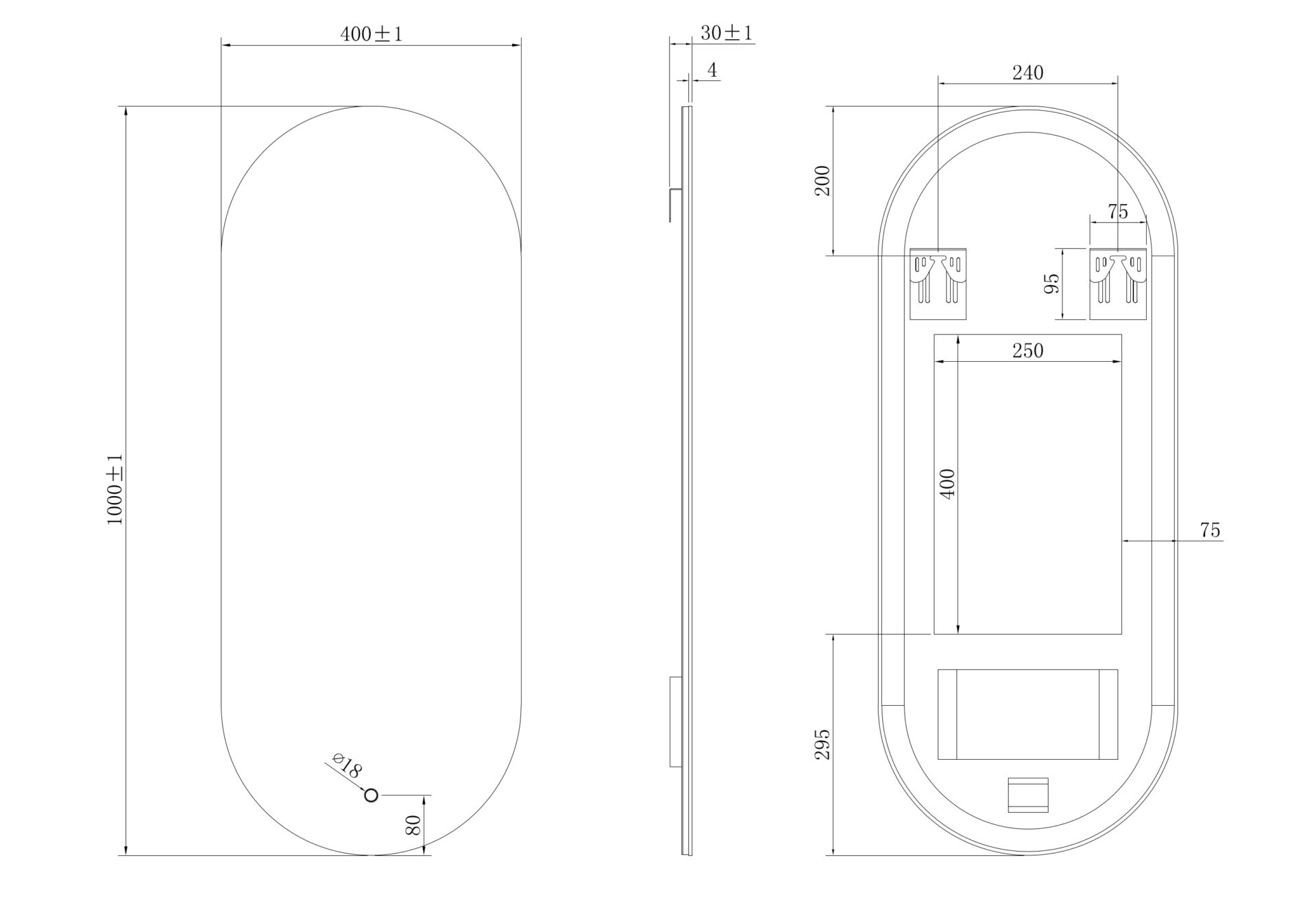 LINA, LED illuminated mirror, 400×1000 mm