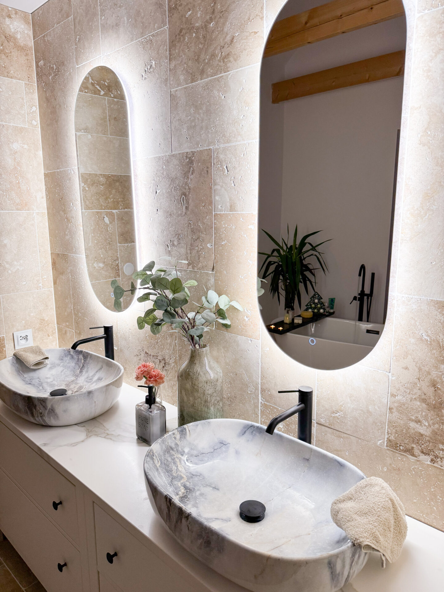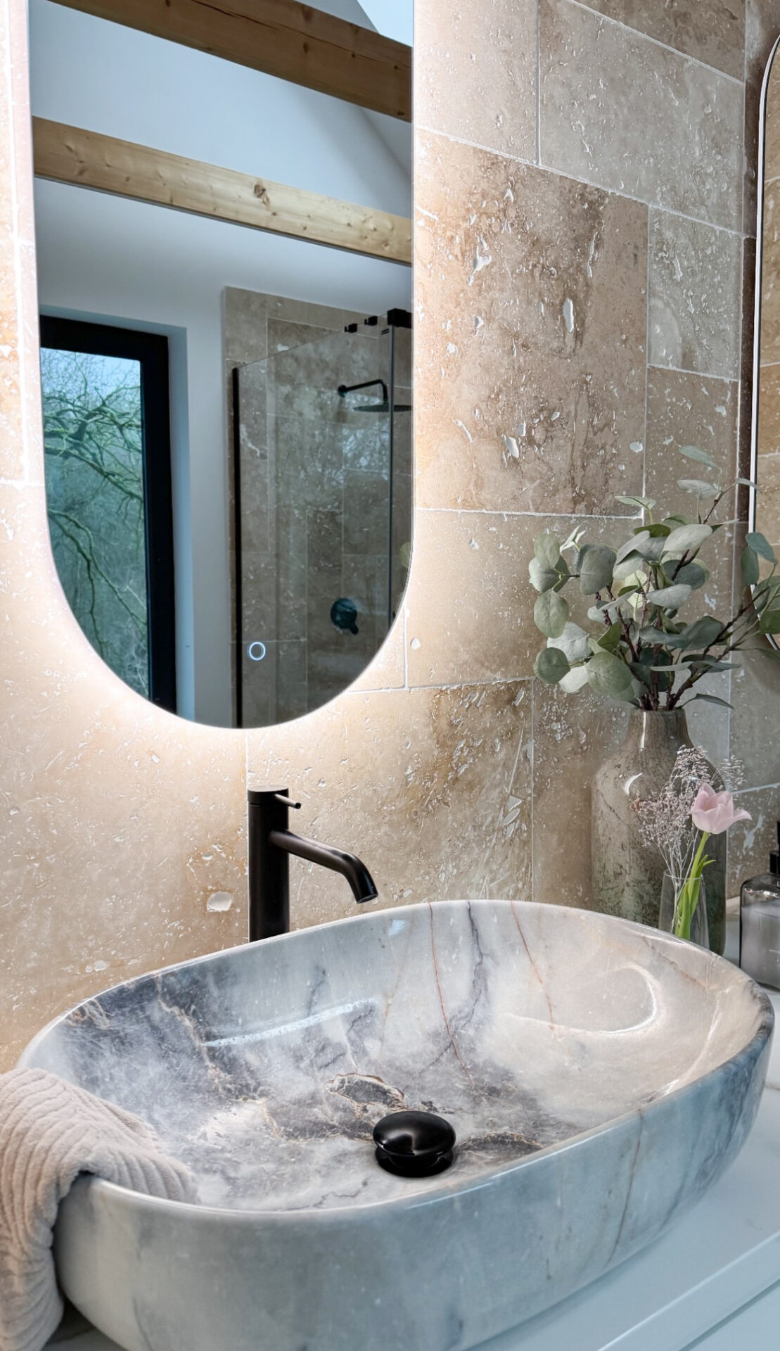 This mirror with LED lighting is not only a practical object, but also a decorative element. Its minimalist design and soft illumination create an atmosphere of calm and meditation. Whether you place it in your bathroom or bedroom, it will add an elegant accent to your interior.