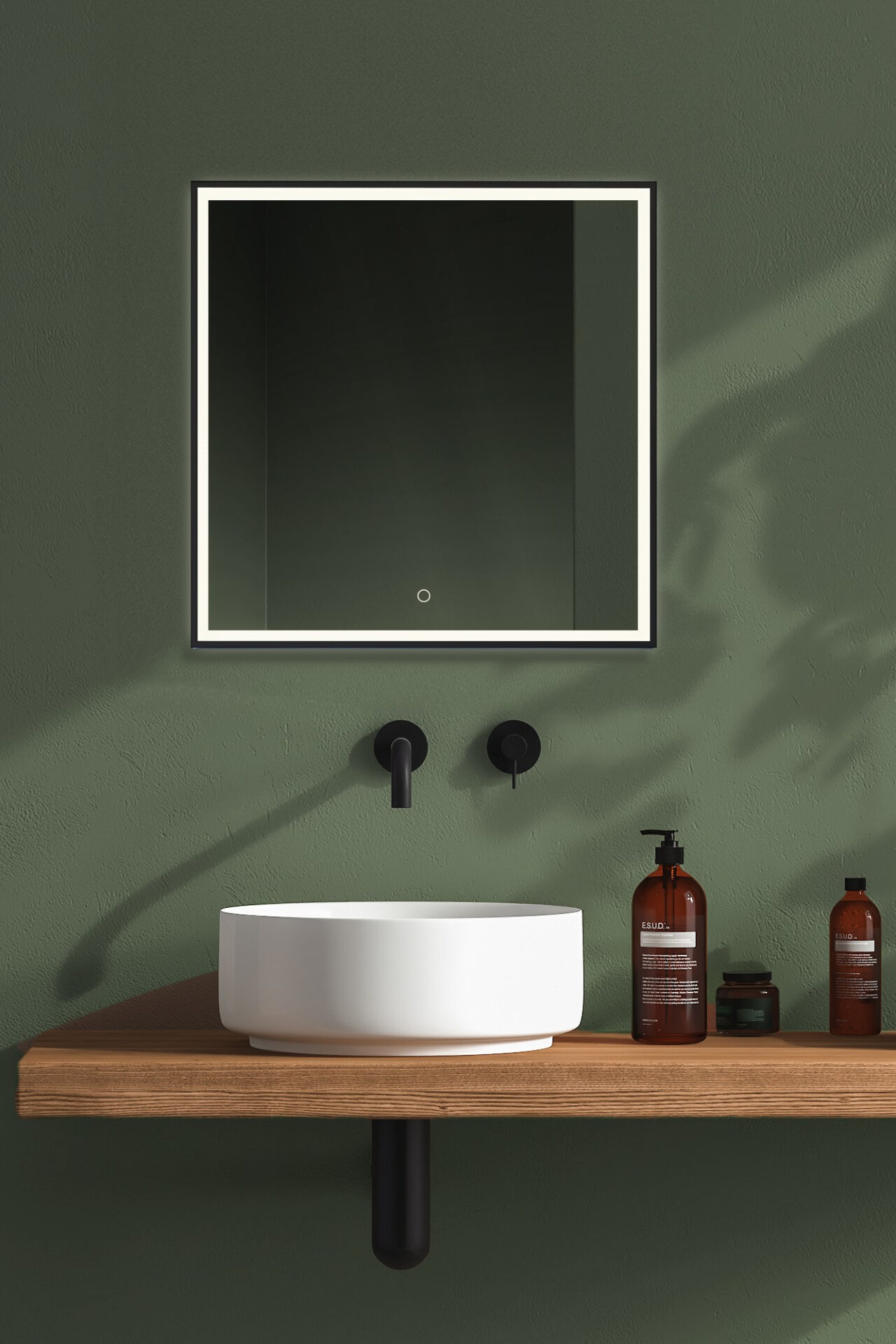 THEO, LED illuminated mirror, 800×800 mm, matt black