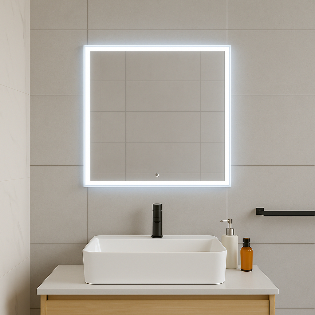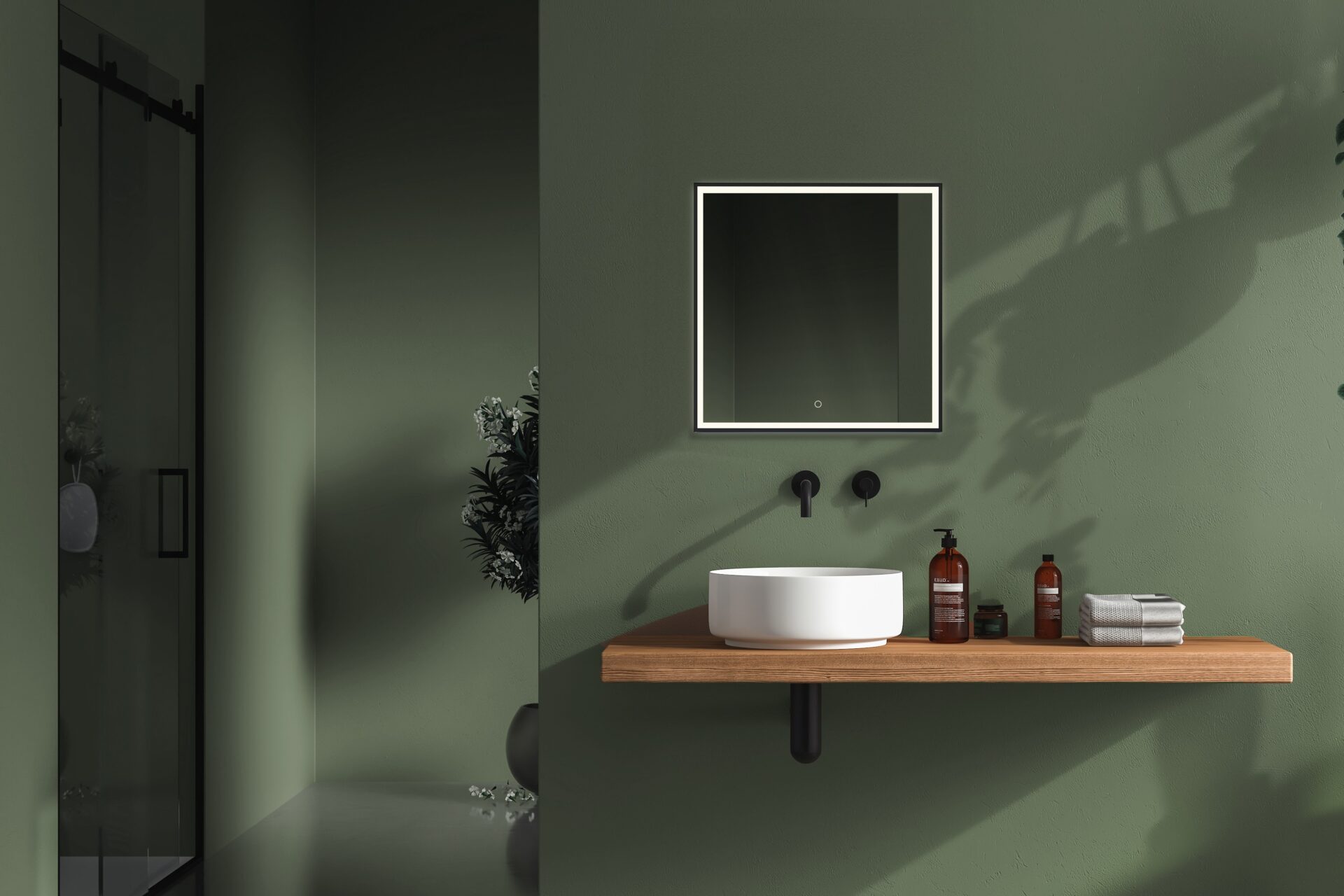 A mirror with LED lighting THEO, 800×800 mm, is new on the Scandinavian market.