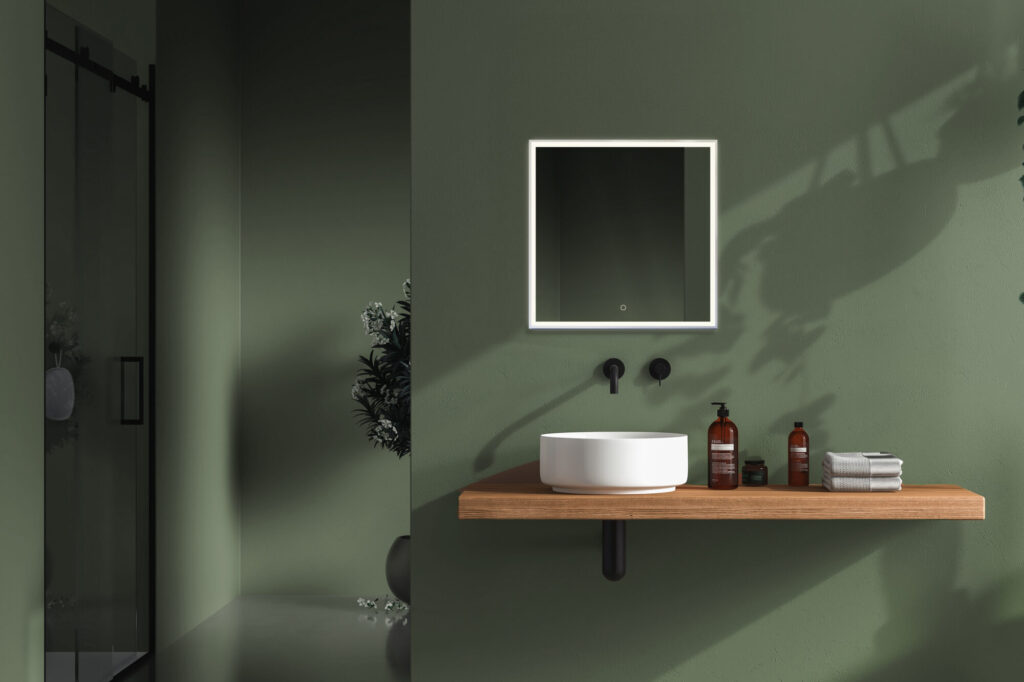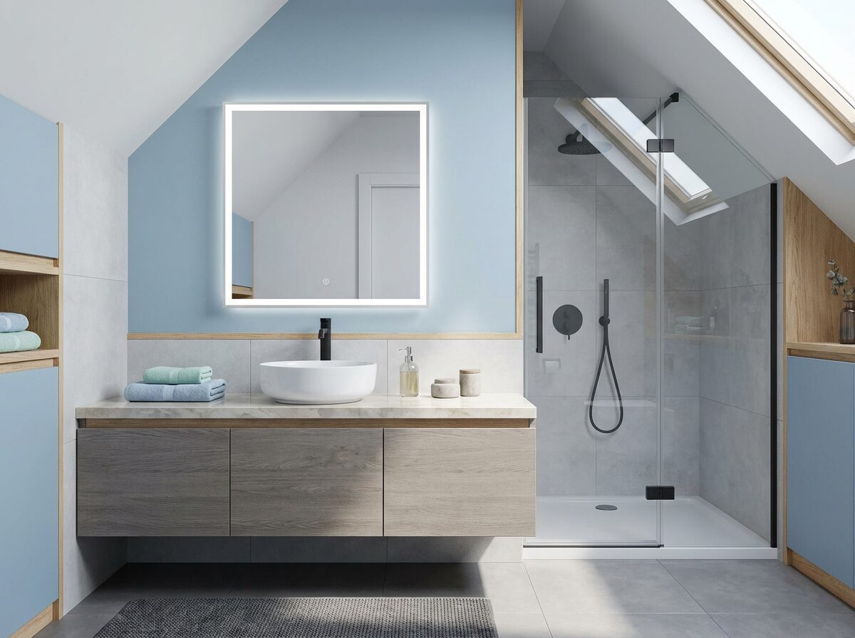 A mirror with LED lighting THEO, 800×800 mm, is new on the Scandinavian market.