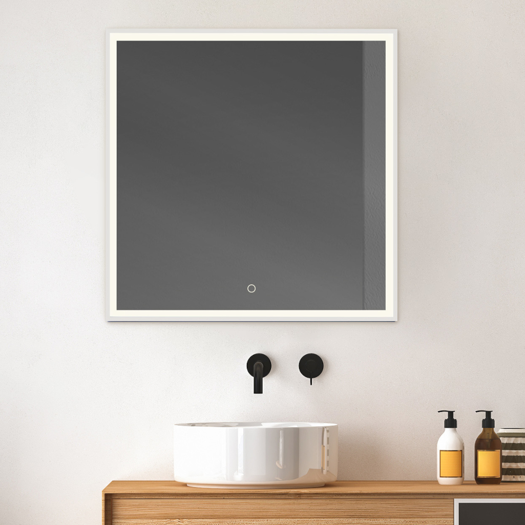 THEO, LED illuminated mirror, 800×800 mm, matt white
