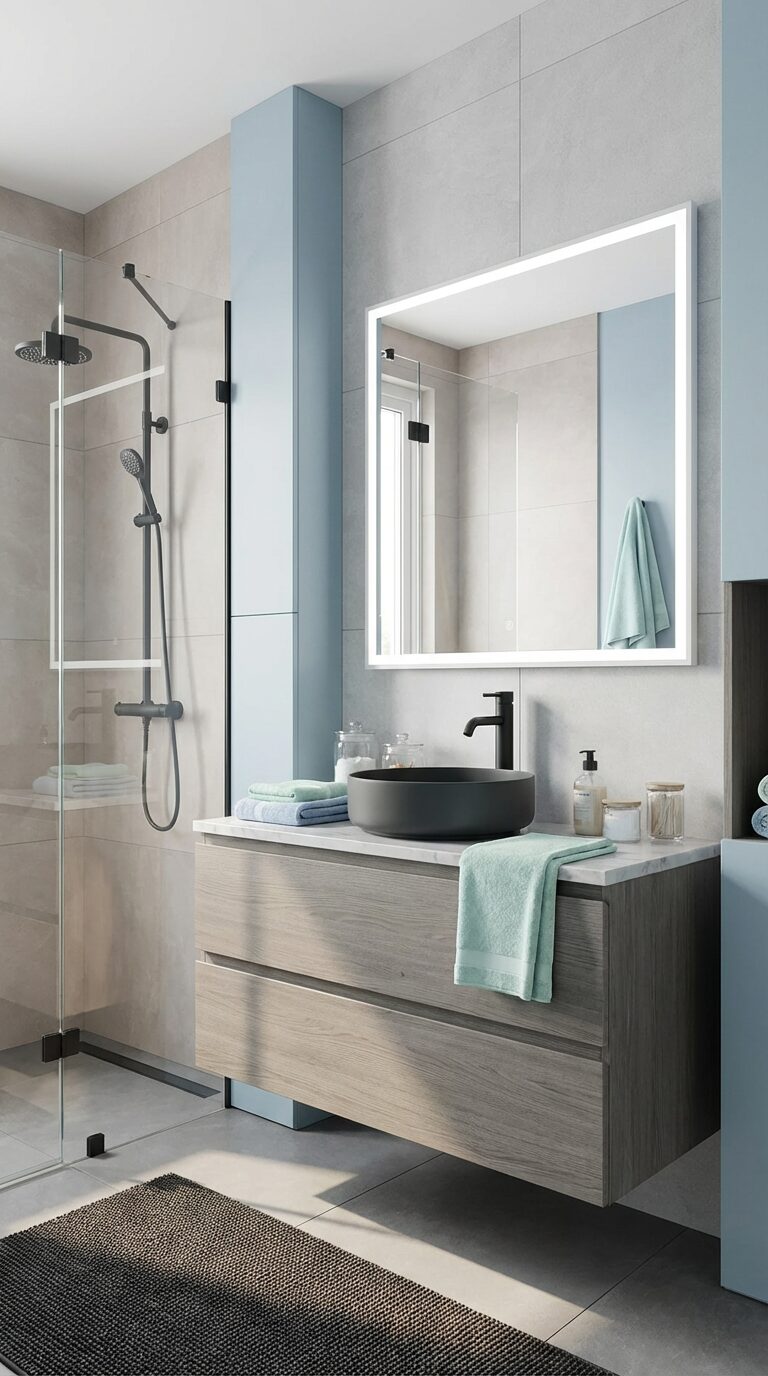 It is a combination of minimalist design and functionality that will give your bathroom a new lustre. Creates pleasant and delicate lighting.